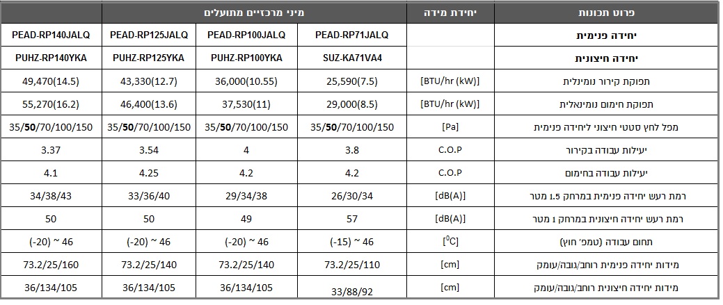 מזגן מיני מרכזי PEAD-PUHZ 71/100/125/140 – אנכי